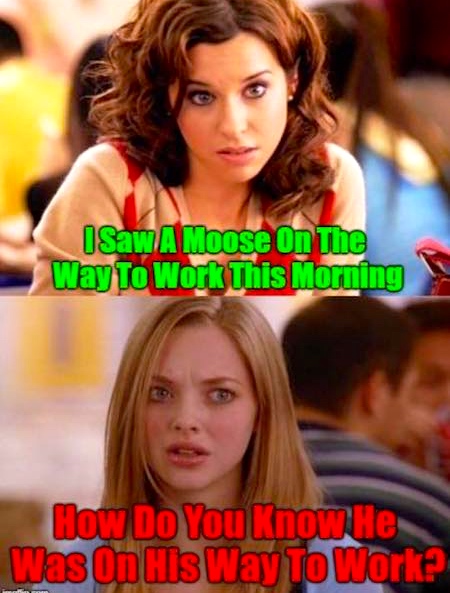 Then, yesterday, I noticed an oddly named image on my desktop display of images (which, even pared down, is still sizable): MooseAttachment.jpg. This turned out to be a different memic joke exploiting a LA / HA ambiguity: