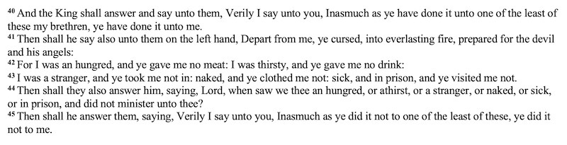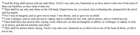 (#2) Depart from me, ye cursed, into everlasting fire: a ferocious sentence for failing to exhibit acceptance, caring, and mercy to the least of us