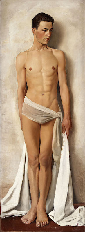 I then searched further for biographical information on Zerge, finding material only on artworld — art sales and auction — sites, all of it talking in bland terms about his artistic styles and his quiet life history in Sweden, and nothing more. Meanwhile, various gay sites have noted the evident homoeroticism in many of his works, citing especially the 1925 Saint Sebastian, a 1919 Model Act, and a 1948 Boy in American Sailor Costume (I’ll get to all of them in a little while). It could hardly be clearer that Zerge’s sexual imagination — richly manifested in his art — centered on boys and young men, and that he had a long-term affectionate friendship with Holman, who could fairly be characterized as the love of his life. Whether Zerge and Holman were sexual partners is none of our business (unconsummated passions were commonplace a hundred years ago), and there’s no evidence that I can find that Zerge ever did more than, scrupulously, appreciate young, lean male bodies. So I view it as a shame that his substantial body of homoerotic art is not better known and celebrated.
