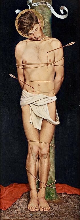 A surprise on Pinterest this morning: the head from a 1925 Saint Sebastian painting by Swedish artist Owe Zerge (1894 – 1983); even in the crowded field of homoerotic St. Sebastian depictions, the martyred saint in Zerge’s painting stands out as an exceptionally beautiful young man: