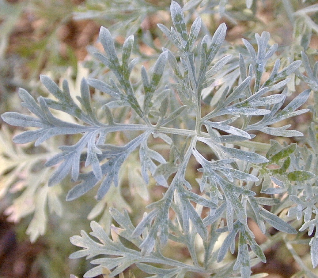 The silvery leaves. Artemesias are favorite plants of mine, with a wonderful scent to their feathery leaves (due to the volatile compounds, distilled, that give us absinthe):