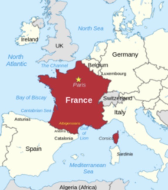France, officially the French Republic, is a country located primarily in Western Europe. Its overseas regions and territories include French Guiana in South America, Saint Pierre and Miquelon in the North Atlantic, the French West Indies, and many islands in Oceania and the Indian Ocean, giving it one of the largest discontiguous exclusive economic zones in the world. Metropolitan France shares borders with Belgium and Luxembourg to the north, Germany to the northeast, Switzerland to the east, Italy and Monaco to the southeast, Andorra and Spain to the south, and a maritime border with the United Kingdom to the northwest. Its metropolitan area extends from the Rhine to the Atlantic Ocean and from the Mediterranean Sea to the English Channel and the North Sea. … France is divided into eighteen administrative regions, of which thirteen are located in metropolitan France (in Europe), while the other five [Guadeloupe, Martinique, French Guiana, Mayotte, Réunion] are overseas regions.