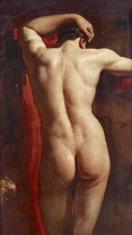 (#3) Academic Study of a Male Nude, Seen from Behind, 1830-35 (photo Southend Museums Service); an appreciation of the models musculature: his upper arms, his shoulders, and especially his buttocks