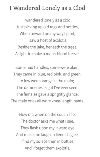 Mad‘s axolotl poem. From issue #43 (1958), reproduced here with centered lines in a sans-serif font: