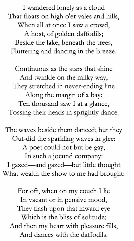 And then the Wordsworth original from (1807), reproduced here with serif-font centered lines: