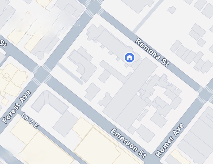 Back on the walk, we continued to the corner of Emerson and Homer, across the street from the Whole Foods, where I rested under a still winter-bare Chinese elm (Ulnus parvifolia), an excellent street tree that lines this block of Homer Ave. I talked about the area in earlier days, and we admired the big old house at our corner, so beautifully kept up, with a manicured front lawn of green grass.