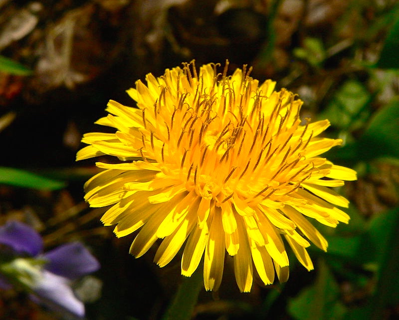 In the middle of which there bloomed a bright yellow weed — a common dandelion! Like this one: