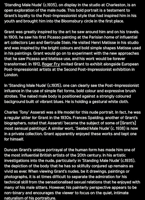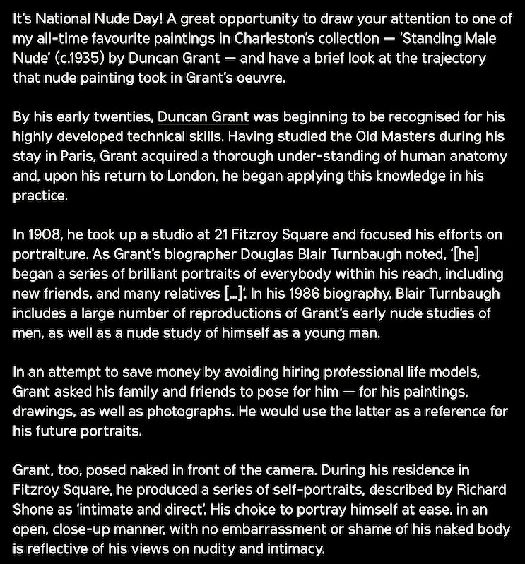 “Duncan Grant’s Nude Portraits”. Charleston has a website. From it, on 4/19/21, this piece by Diana Tsar: