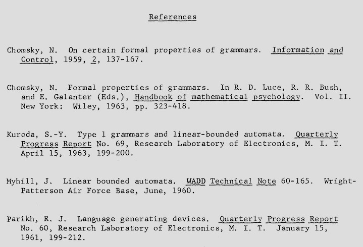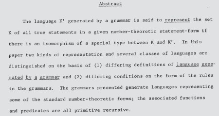 Far from having tried to keep Post’s name out of the picture, Chomsky appears to be literally the only linguist in the entire 20th century who ever cited Post at all. Even in Arnold Zwicky’s mathematical study of how rewriting systems can capture number-theoretic predicates (Zwicky 1963) there is no mention of Post, which is truly surprising, since Zwicky’s project is so closely related to what Post (1944) was doing: studying the mathematical properties of sets of positive integers through the character of rewriting systems that generate them, representing integers in unary notation and so on). The general ideas Post had raised seem to have been under discussion in the 1960s at and around MIT, but apparently linguists had no acquaintance with his most crucially relevant papers.