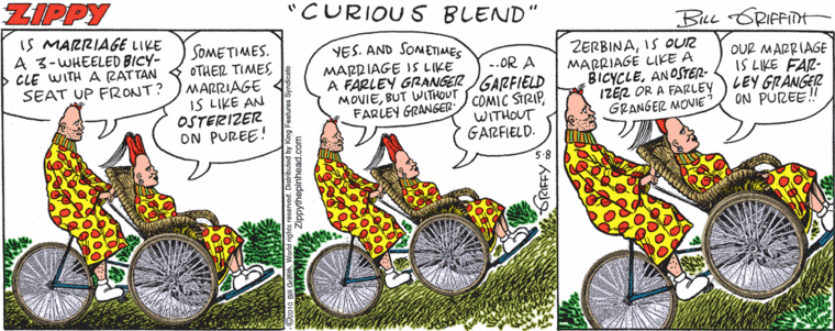 May 9, 2010It’s the weekend: cartoon time! Yesterday brought us Zippy and Zerbina, on a bicycle, on their marriage: