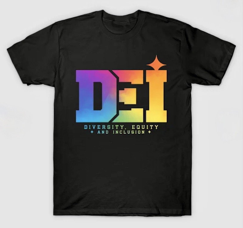 but a different sort of DEI t-shirt, one with a double entendre invoked on it, like this one in my 3/22 posting “Put a red apple in that mouth”: