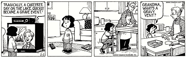 March 3, 2016Today’s One Big Happy, in which Ruthie mishears a phrase by dividing it into words not in the intended way: