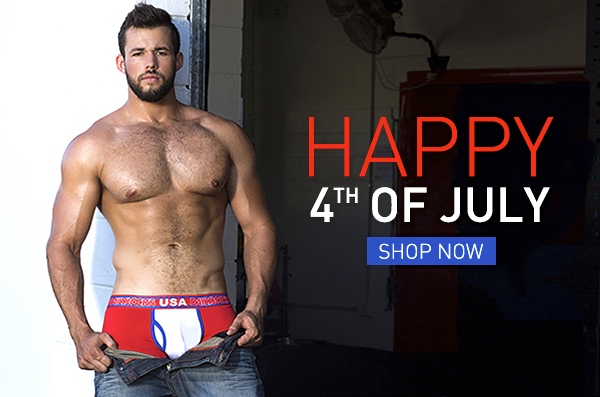 The Daily Jocks ad for the 4th, featuring their very own patriotic underwear, worn by a decidely worried-looking model (with my caption):