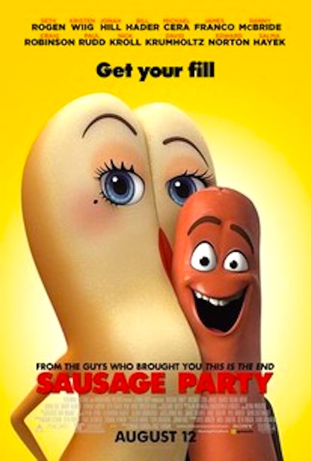 November 8, 2016Now in theaters and being advertised on tv: the animated movie Sausage Party, pretty much an extended (but good-hearted) dick joke. Innuendo in the posters (fill alluding to insertion, rise alluding to erection):