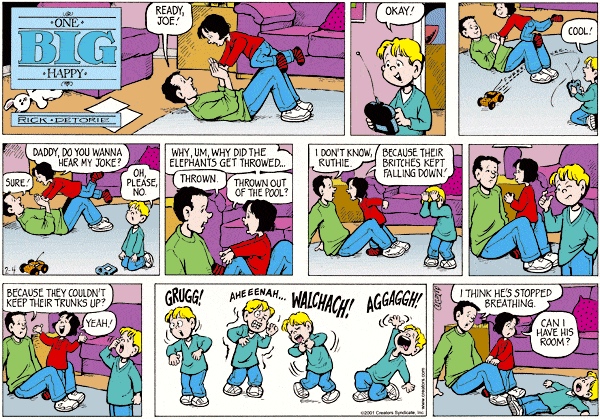 Yesterday’s One Big Happy, in which Ruthie works at telling jokes: