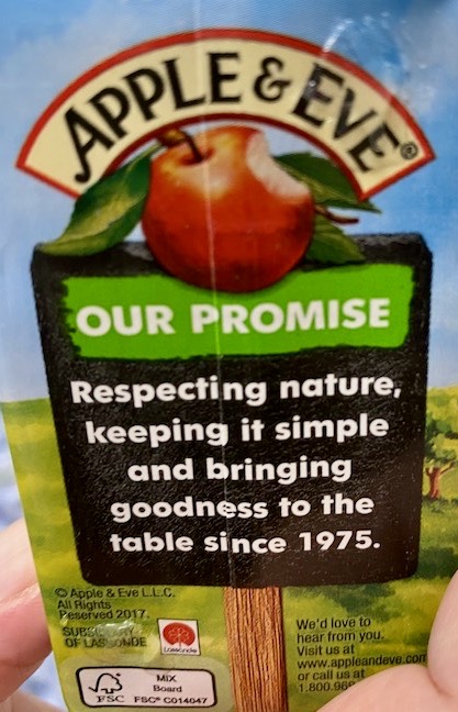 At one point in my most recent SUMC stay we had gotten to the place where I was about to be taken off NPO (see my previous posting “SUMC moments: NPO”) and given some modest real food, but the orders to do this had not yet been issued. The head nurse (about whom more in another posting [this very posting], which will take us to India and the northeast corner of South America) took pity on me and extracted — oh great pleasure! — a tiny box of apple juice for me [from the wonderfully named apple juice company Apple & Eve].