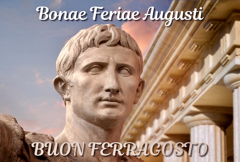 (#1) Imperial illustration from the Scuola Leonardo da Vinci website, “Ferragosto in Italy” on 8/13/21 (with holiday wishes in Latin and in Italian)
