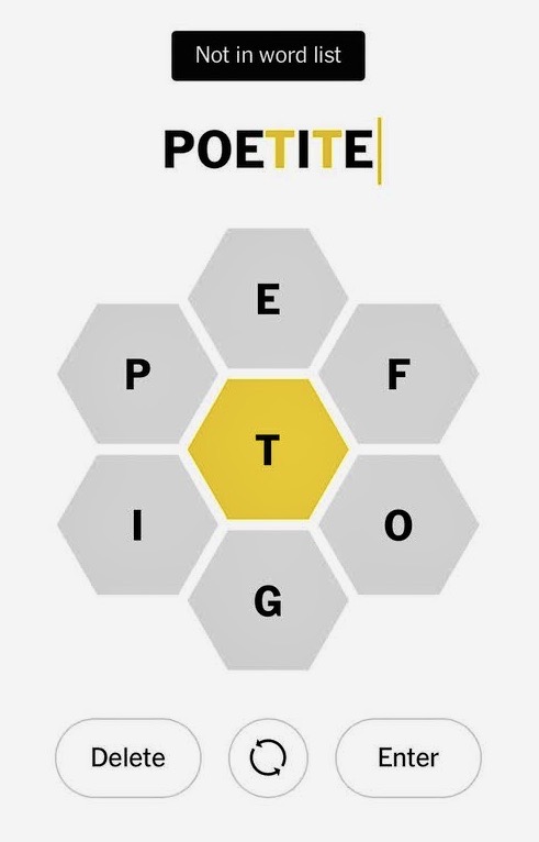 Faced with this judgment on Facebook today about the Spelling Bee puzzle from the New York Times,