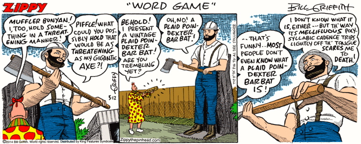 In today’s Zippy, we return to the Poindexter bar bat; see “The Poindexter bar bat, or barbat”, here, with extended discussion, including material from the Zippy archives and an analysis of bar bat. From that posting: