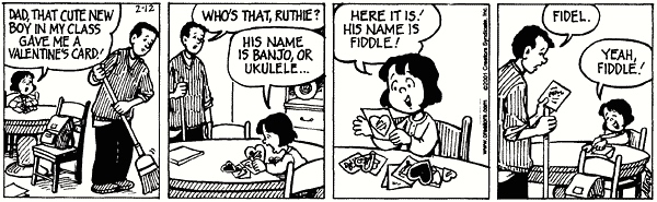 Apparently unfamiliar with Spanish personal names, Ruthie treats FIDEL as the closest word she can read: FIDDLE. And then sticks to that.