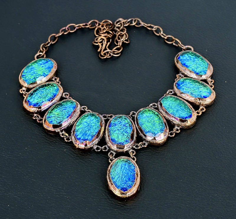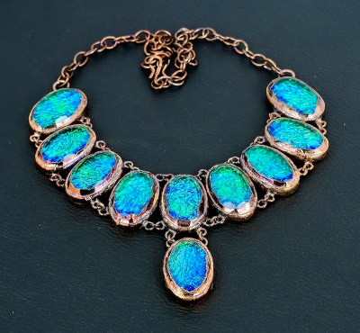 (#1) A blue Australian opal necklace (with an electroformed copper chain), jewelry by Anaika from Etsy (US$50)