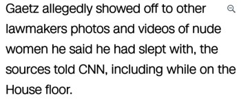 Well, actually, the headline — from CNN Politics, “Gaetz showed nude photos of women he said he’d slept with to lawmakers, sources tell CNN” by Jeremy Herb, Lauren Fox and Ryan Nobles yesterday — isn’t problematic, but very early in the body of the story, we get this: